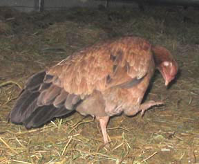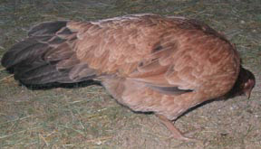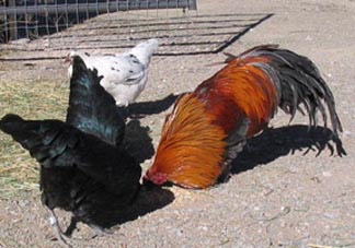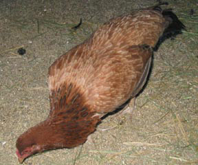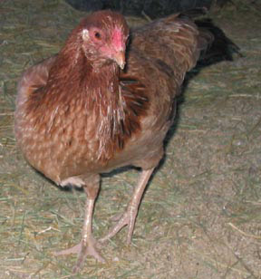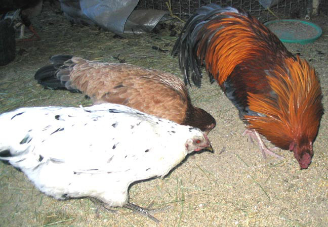Below, Sweetpea, a Cubalaya pullet at six months of