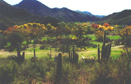 Aravaipa Canyon, Arizona, Thanksgiving of 2000. A tropical storm was responsible for the unusually green landscape. Photo courtesy Mike Bertin.