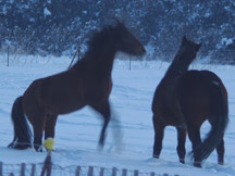 Viking makes a happy horse sound (that flub-bub-bubber sound) as he sees that Danny isn't getting away with stealing anyone's alfalfa. We had put out five piles for four horses, but Danny keeps on trying to get some away from another horse.